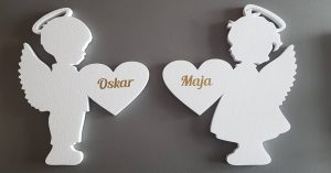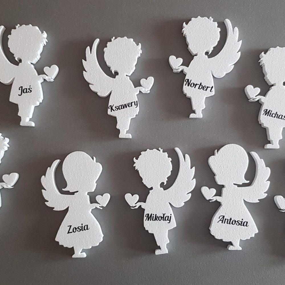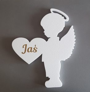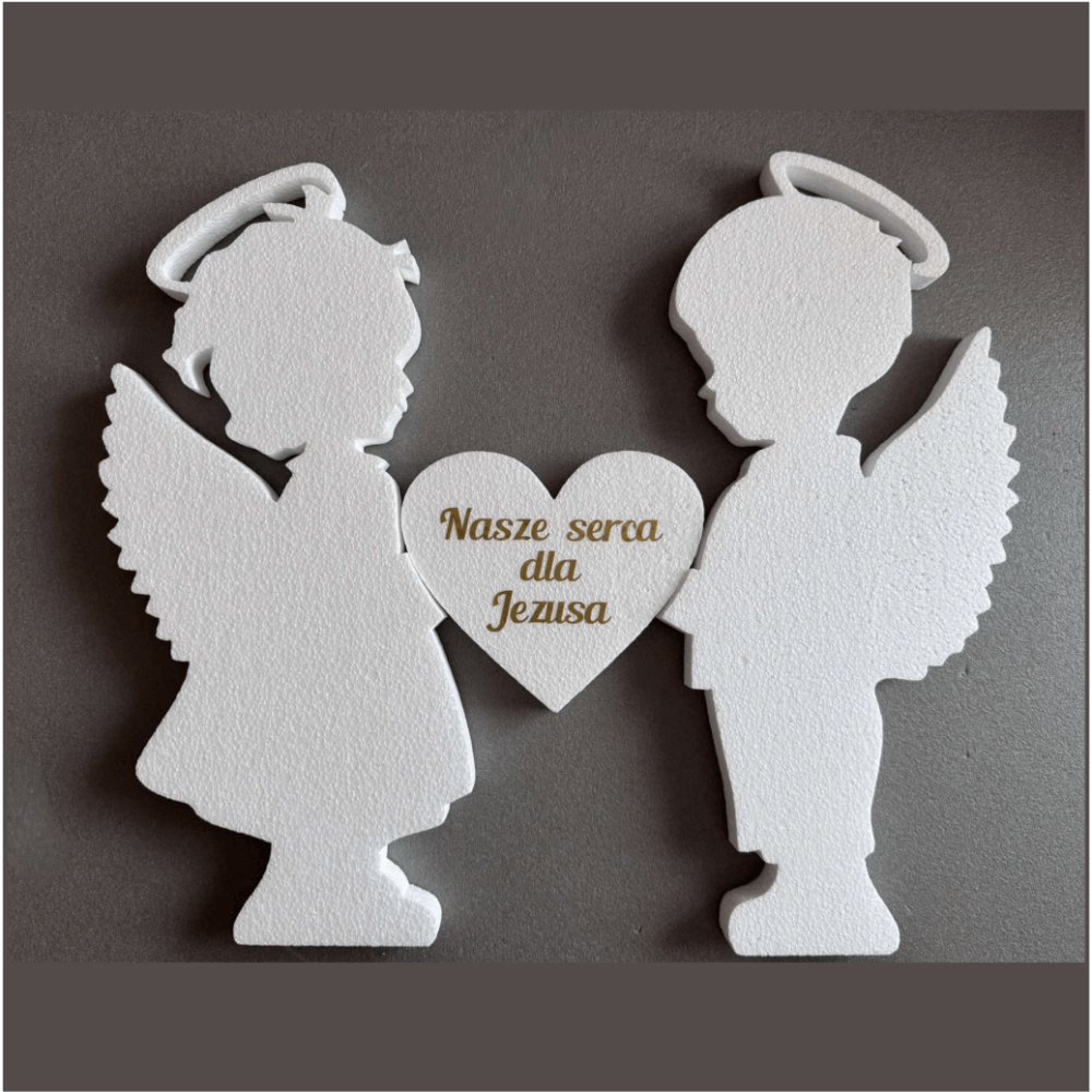 Dekoracje Komunijne ze Styropianu z Imionami Dzieci – Personalizowane Dekoracje na Pierwszą Komunię Świętą -Anioł ze styropianu z dużym sercem