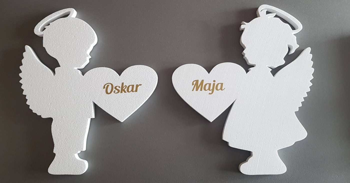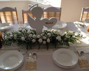 Nasze dekoracje to doskonały sposób na udekorowanie zarówno wnętrza Kościoła, jak i sali bankietowej. Imiona dzieci wycięte w styropianie stanowią elegancką ozdobę, która doskonale komponuje się z każdym wystrojem. Piękne i subtelne, a jednocześnie trwałe, stanowią niezapomnianą pamiątkę z tego wyjątkowego dnia.
