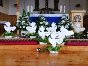 Anioły z sercem ze styropianu doskonale sprawdzą się jako dekoracje Kościoła oraz sali w dniu pierwszej Komunii Świętej.