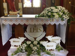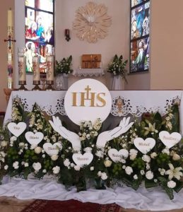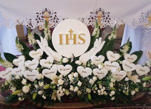 Dekoracje Komunijne ze Styropianu z Imionami Dzieci – Personalizowane Dekoracje na Pierwszą Komunię Świętą –