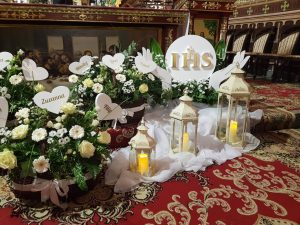 Nasze dekoracje to doskonały sposób na udekorowanie zarówno wnętrza Kościoła, jak i sali bankietowej. Imiona dzieci wycięte w styropianie stanowią elegancką ozdobę, która doskonale komponuje się z każdym wystrojem. Piękne i subtelne, a jednocześnie trwałe, stanowią niezapomnianą pamiątkę z tego wyjątkowego dnia.